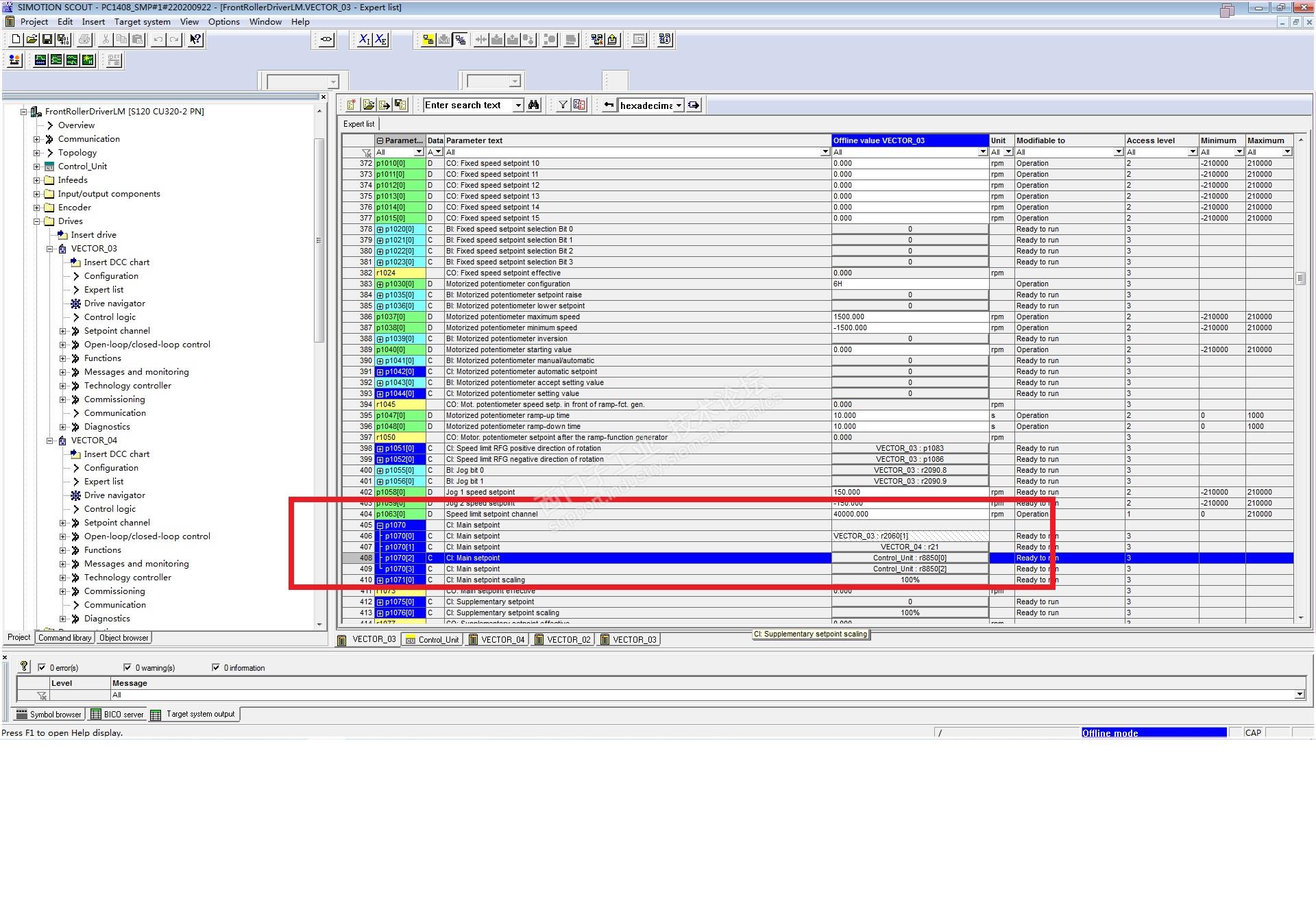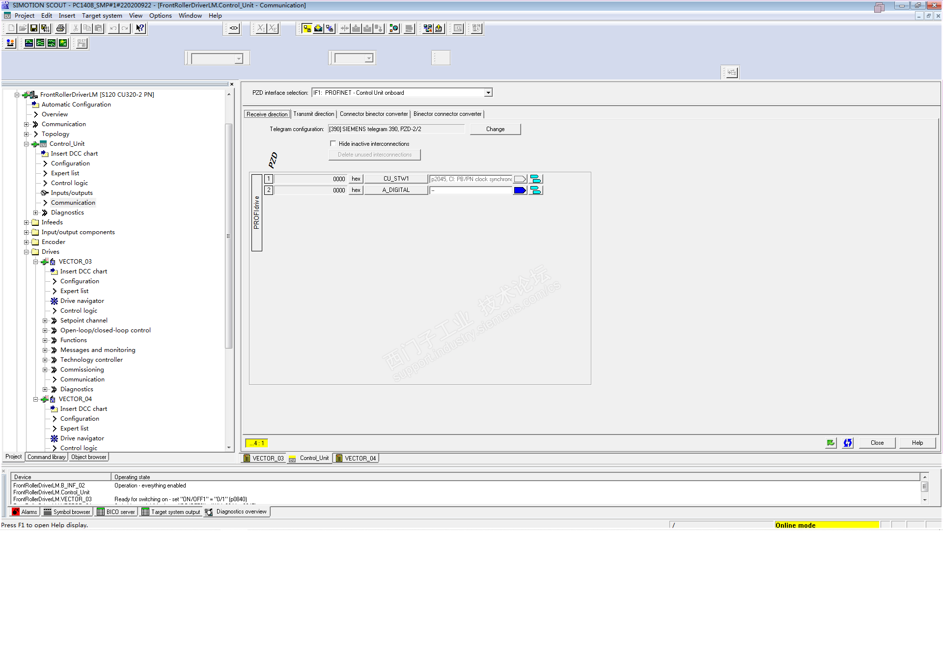 两个CU320-2PN 每个带两个DC/AC(矢量轴) 通过CBE20 sinamic link通信