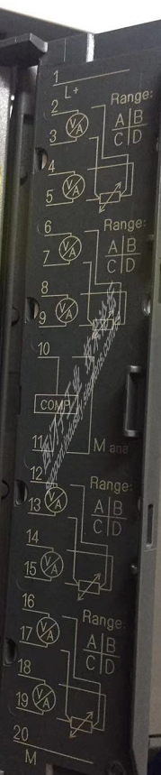 通道0-1 2-3 4-5 接的是电压信号。通道6-7 量程卡为D,两线电流信号。4-20ma电流信号接到18-19脚。PLC监控到61408,是个负值。增加输入信号,万用表检测到5.4ma时,PLC监控到的还是负值。
