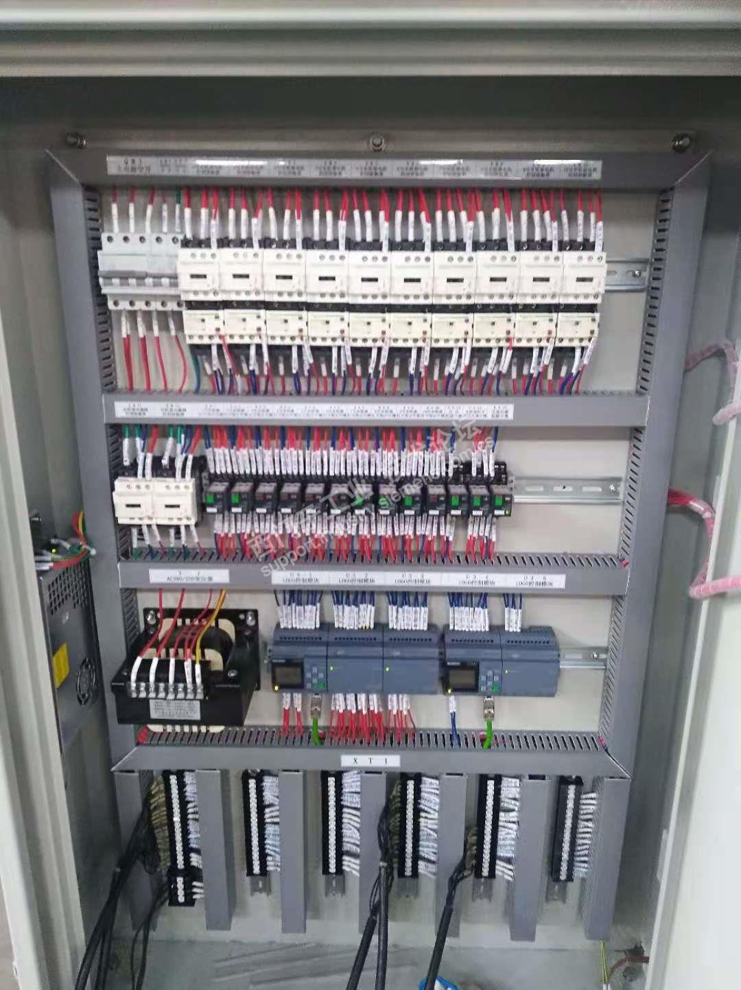 项目中LOGO通过继电器和接触器控制10台1KW的电机和电磁阀,控制电源经过变压器隔离后由开关电源输出。 网线和连接器等都是采购的西门子产品。