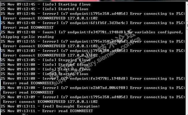 在网站上看到了node-red连接S7-200smart 的方法,初次连接成功,但是后续无法部署,cmd报错如上,求大神指导,谢谢!