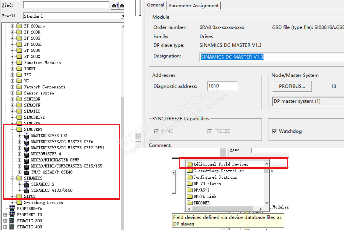 Step7V5.6版本,在线更新过硬件组态。组态界面右侧列表中,找不到6RA80调速器硬件选项,另外一个文件"additional field devices"可以找到,什么原因呢。 见截图