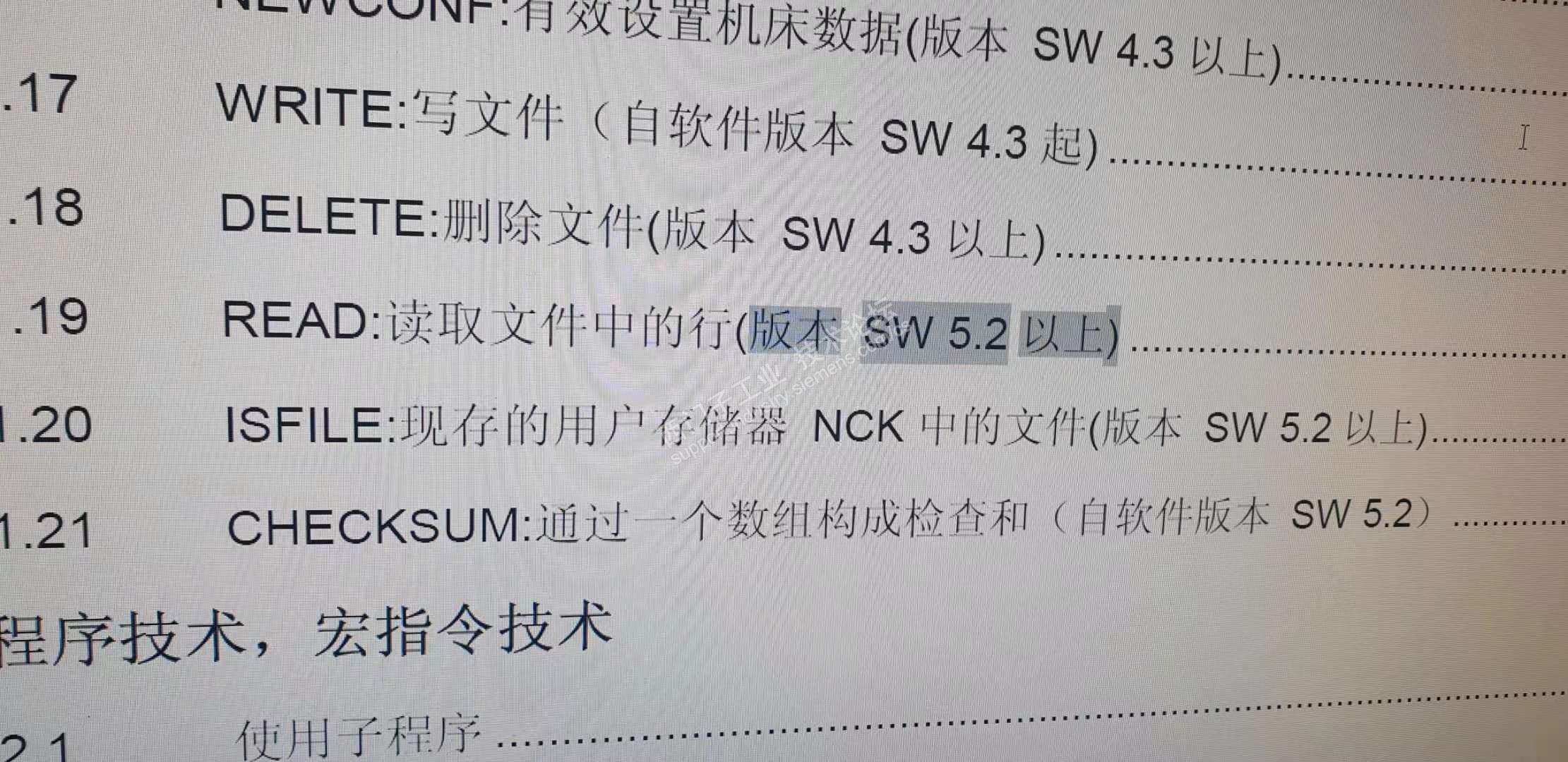 大家好,高级编程语言手册中有些指令 写有SW5.2以上,这个SW5.2是指的什么?怎样查询自己机床上这个东西的版本?低版本想升级的话需要 怎样做?