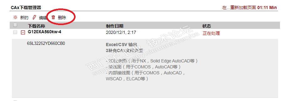 本想在下载个G120XA 560KW变频器的CAD数据。结果一直显示“正在处理”。都已经过了一天了还是这中状态。但是官网mySupport.industry过几分钟就发邮件给我说“订单已经完成 ”。目前为止已经发了800多封重复的邮件了。有没有办法终止此项任务。