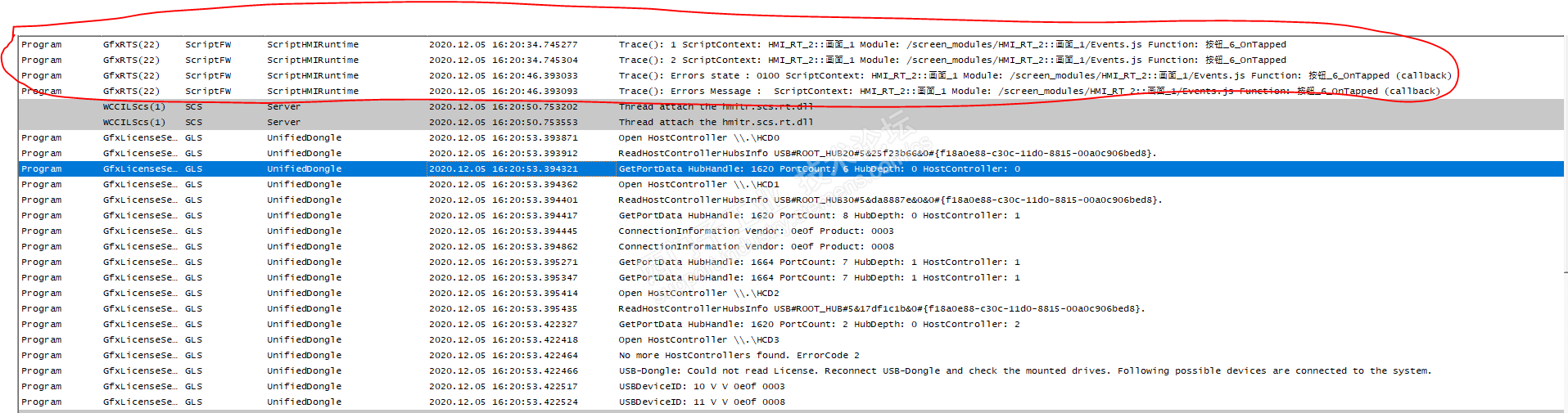 用unified 跟SQL Server连接,语句是unified自带的,改了一下连接的语句,但是一直连不通,用traceviewer 抓到的信息,没有什么意义:下面是编写的语句,放在一个按钮触发: