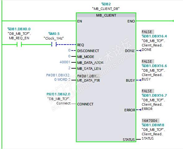 打开程序后,发现就一个MB_CLIENT的测试程序,后来想了一下,是不是可以通过S7-PLCSIM Advanced与Modbus Slave来做模拟?说干就干,测试下来,还真能通讯 上