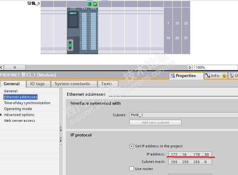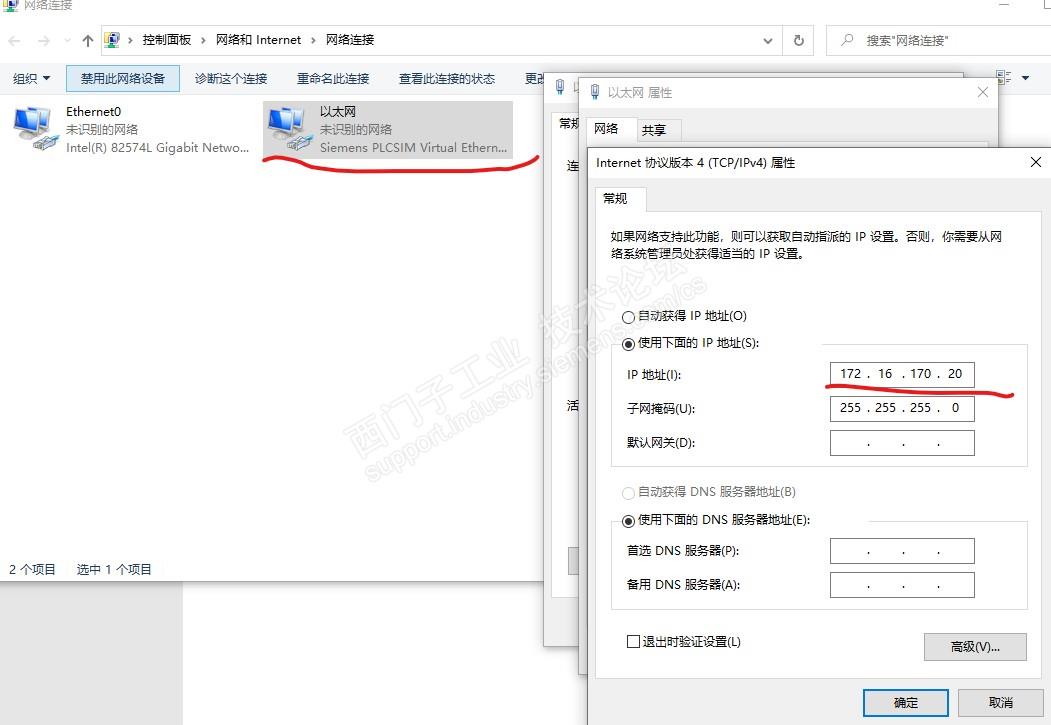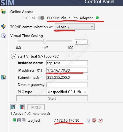 这里的IP要于硬件组态内的地址相同,选择PLCSIM virtual Eth.adapter,在TCP/IP communication With 选择LOCAL,这个LOCAL是对应虚拟网卡的,如下图