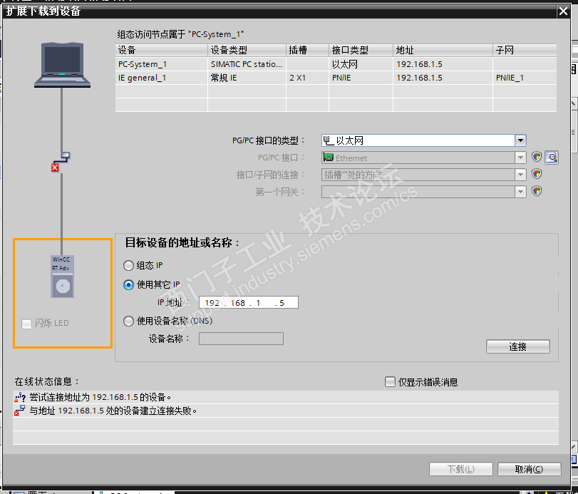 如图,我用的是工业PC组建的WINCC,想把一台笔记本当成工控机,把程序下载进去。现在两台笔记本连的同一个交换机,把另一台笔记本的以太网IP改成了工业PC的IP。两台笔记本安装了博图15和WINCC,我点击下载时却找不到设备,这是怎么回事?需要打开什么?
