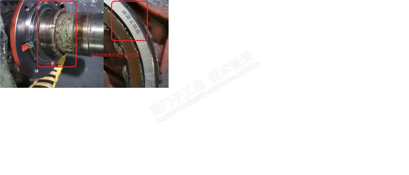 仔细查勘未见明显的轴承破损,属于正常范畴的轴承磨损,我果断决定清洗轴承后重新回装,未重新更换新的轴承,轴承上报照常申请购买作为备件使用。同事拿来柴油清洗一边原轴承,并使用新的高温润滑脂给电机轴承换润滑脂,后轴承为绝缘轴承,订货号:6216.C4.J20AA FAG