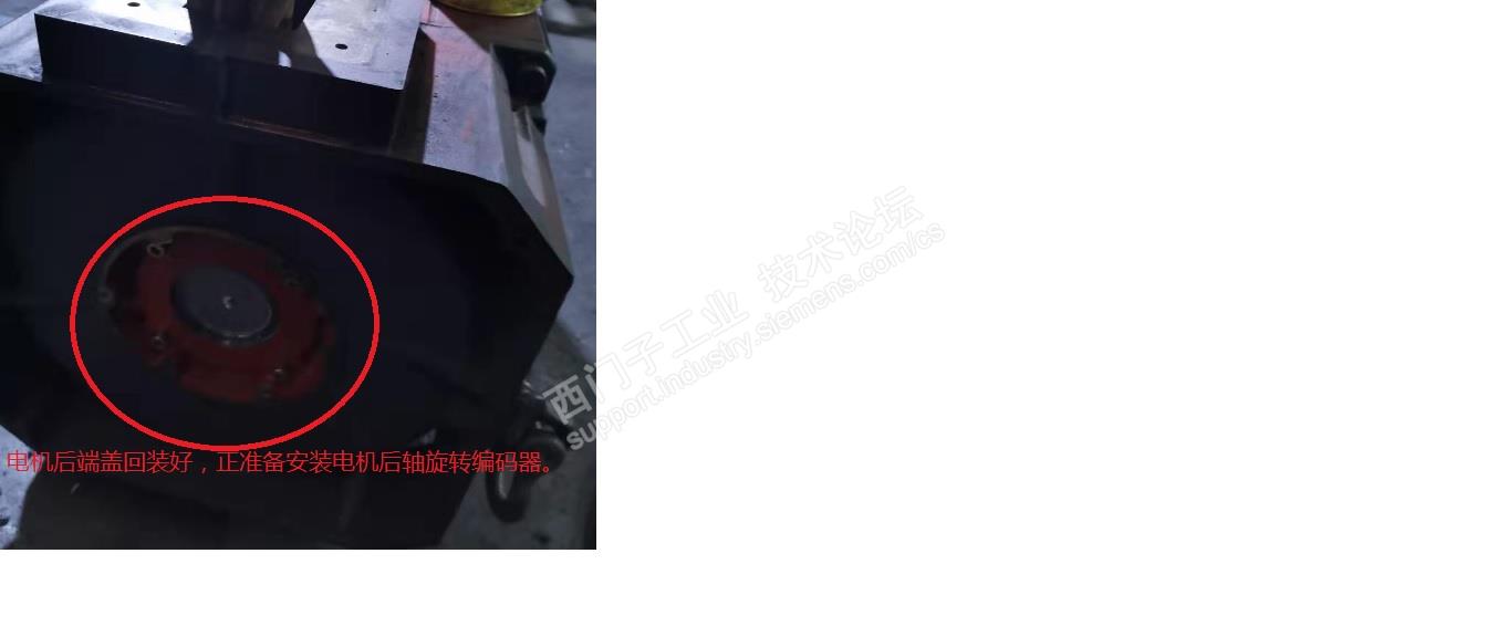 拆该电机后端盖旋转编码器前,咨询过西门子客服。西门子客服说该电机为交流异步电机系列,电机旋转编码器与电机转子零位要求不严苛,所以,在拆卸后端盖前做了一些标记后就开始拆卸电机后端盖了,这点经验非常有效,以便在今后做其它电机保养时,对电机旋转编码器对转子零点的要求有进一步的认识,如果是同步电机,必须做电机转子零点标定。