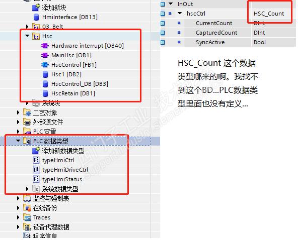 老师,关于HSC_Count这个数据类型是哪里来的哇、我在这个程序中没有找到HSC_Count的DB,在PLC数据类型里面也没有定义....