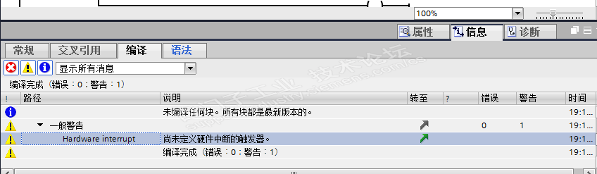 但程序中我已经调用了处理硬件中断的OB块了,不知道什么原因引起的。