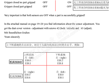 1、查随机资料的上料系统操作说明书;但此说明书中没有关于夹持器信号调整的资料。