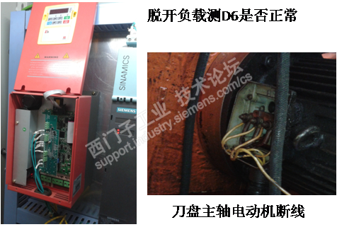 1、电信号演绎法查原因。刀盘主轴不转<-看电控柜内变频器是否输出<-D6屏显AE.PLo报警<-网络查报警内容为“变频器U V W输出有缺相”<-脱开D6的负载。