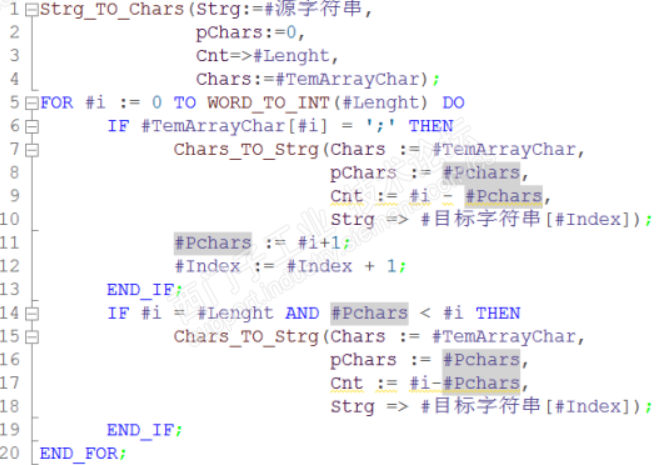 S7小型PLC关于字符截取的SCL语句操作,如下图示意: