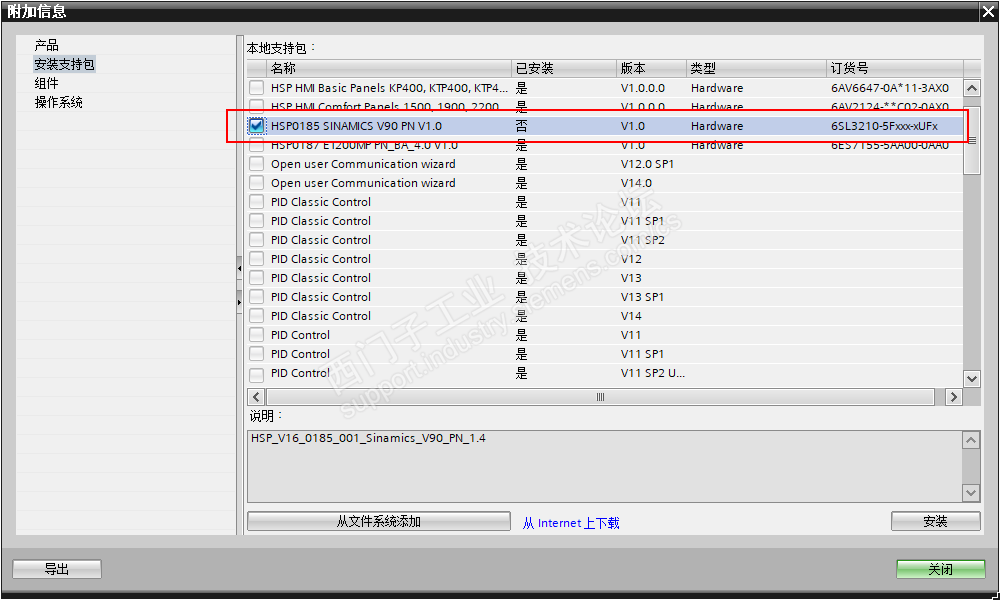 小弟这几天有项目用到博图V16的工艺对象,在添加V90hsd时提示错误,没有安装上v90Hsd文件,有接触过相关情况的前辈吗?