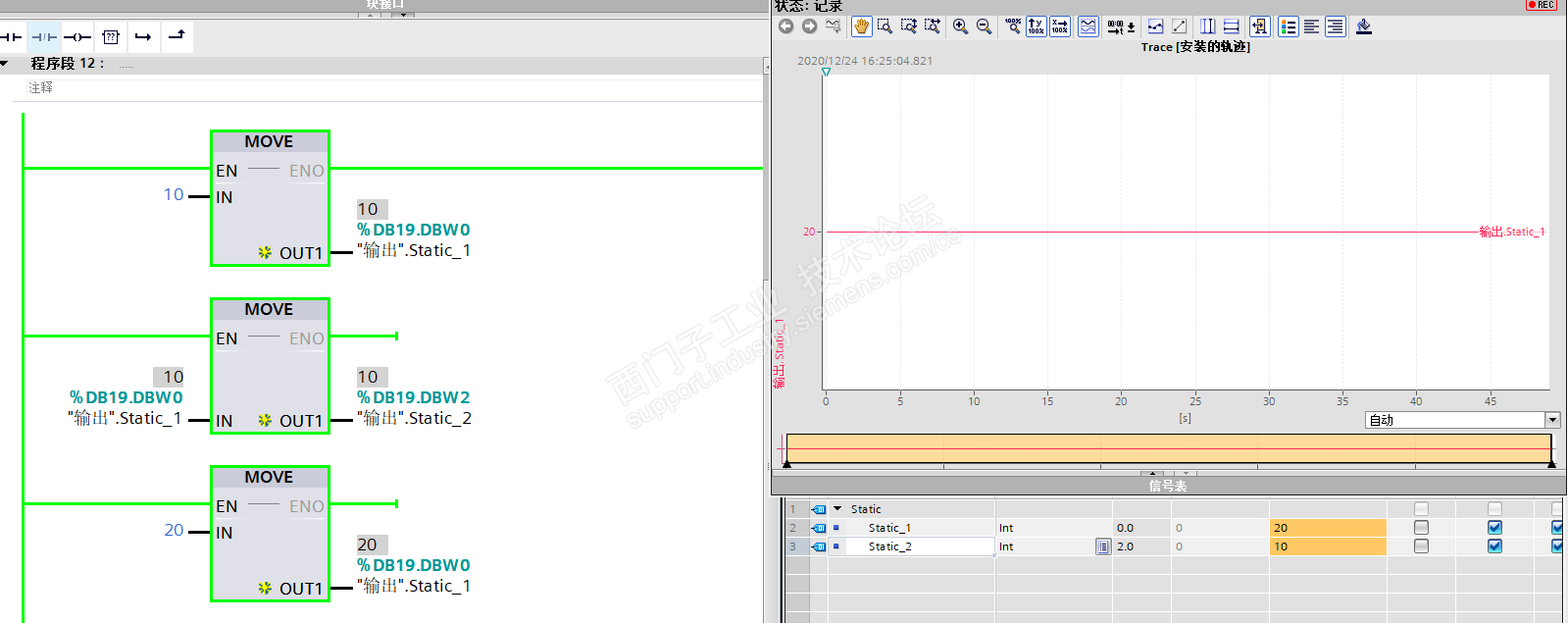各位,我在程序里对数据1做了两次赋值,但监控和数据追踪里只有第二次赋值的结果20,第一次赋值的10完全没有监控到,是太快了抓不到吗?