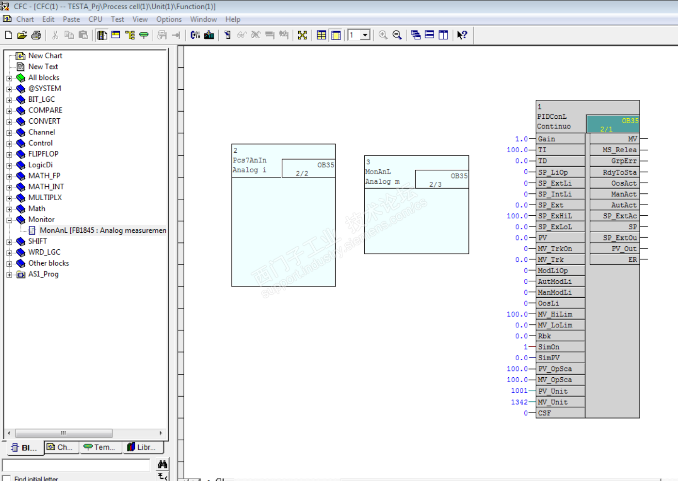 Pcs7AnIn块拖放进去,引脚无法显示,但是PIDConL块的引脚可以显示