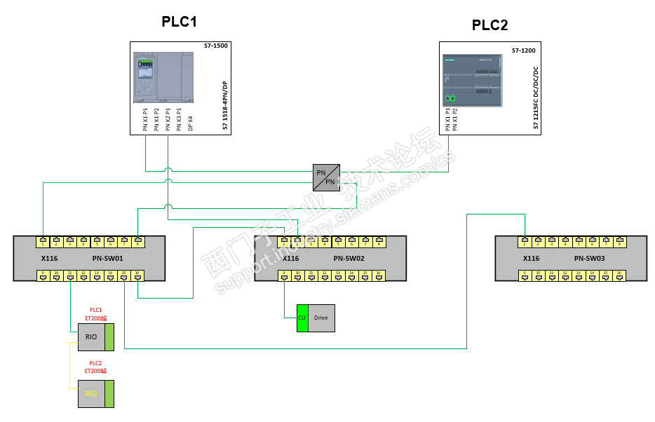 4. 图示SW01的P11端口同时串联了PLC1 和PLC2 的PN设备,这样是否可以?
