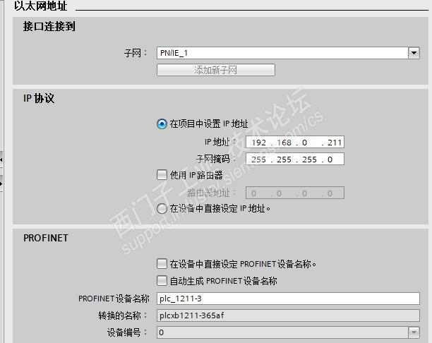 3.双击上图所示的PLC1211填I/Q区,修改和默认都试过,下图所示: