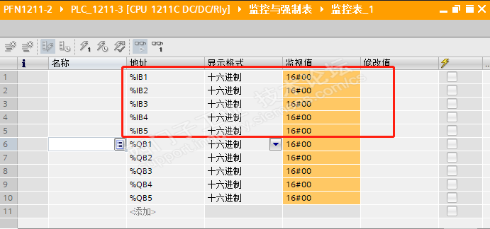 4.然后分别打开两个项目及在线仿真,通讯都是绿色的正常,但是在监控表监控时,两边传输区I/Q的数据无变化。以下两图是当1217的Q区数据改变时,1211的 I 区没收到数据。