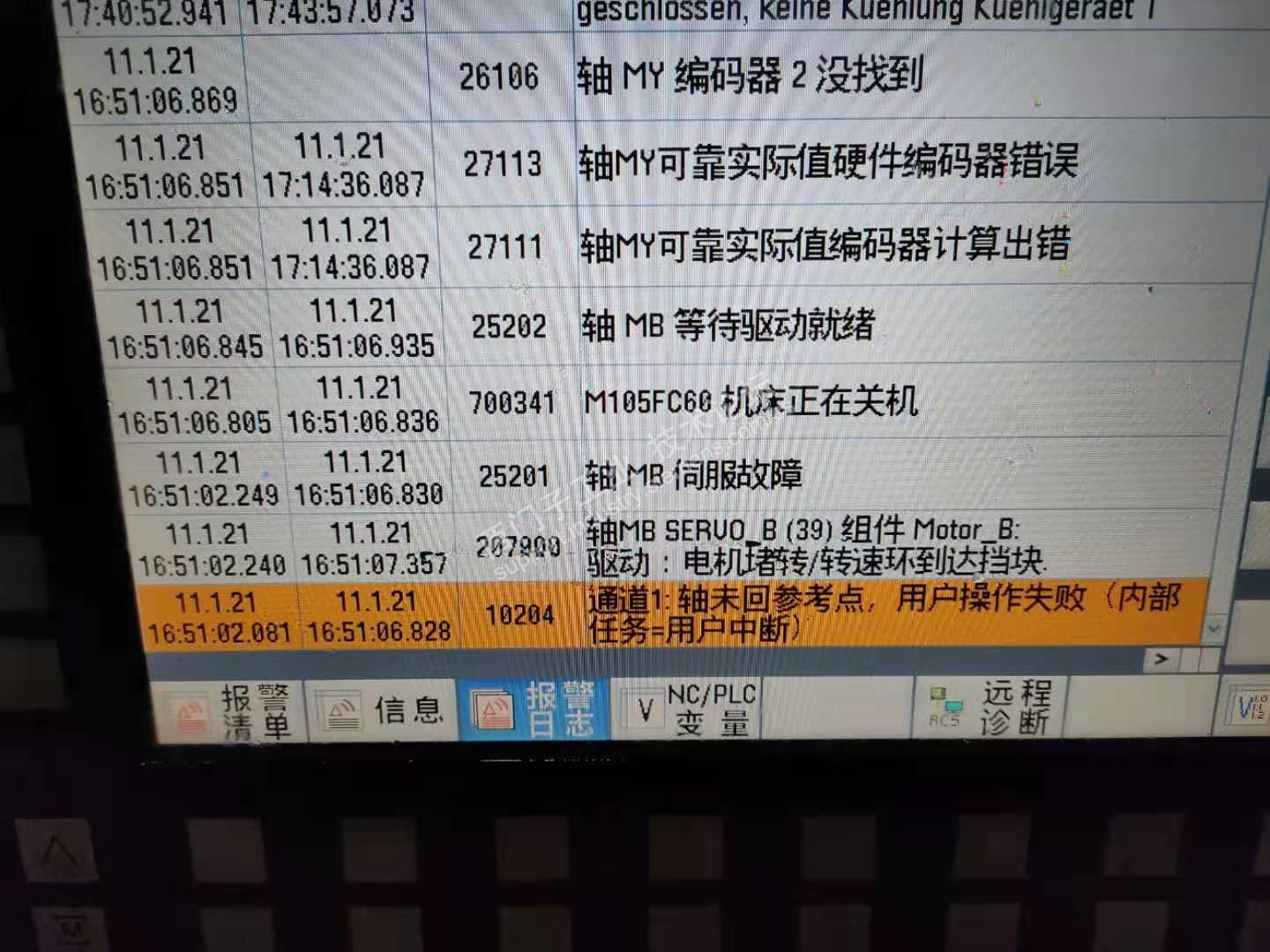 在加工过程中切换工作台刚移动就报:轴MY编码器2没找到,看点位 也没发现啥问题?不知是怎么报这些奇怪故障?求指导?
