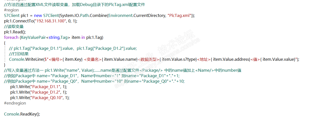 写入变量通过方法一 plc1.Write("name", Value);......name是通过配置文件<Package/> 中的name值加上<Name/>中的number值