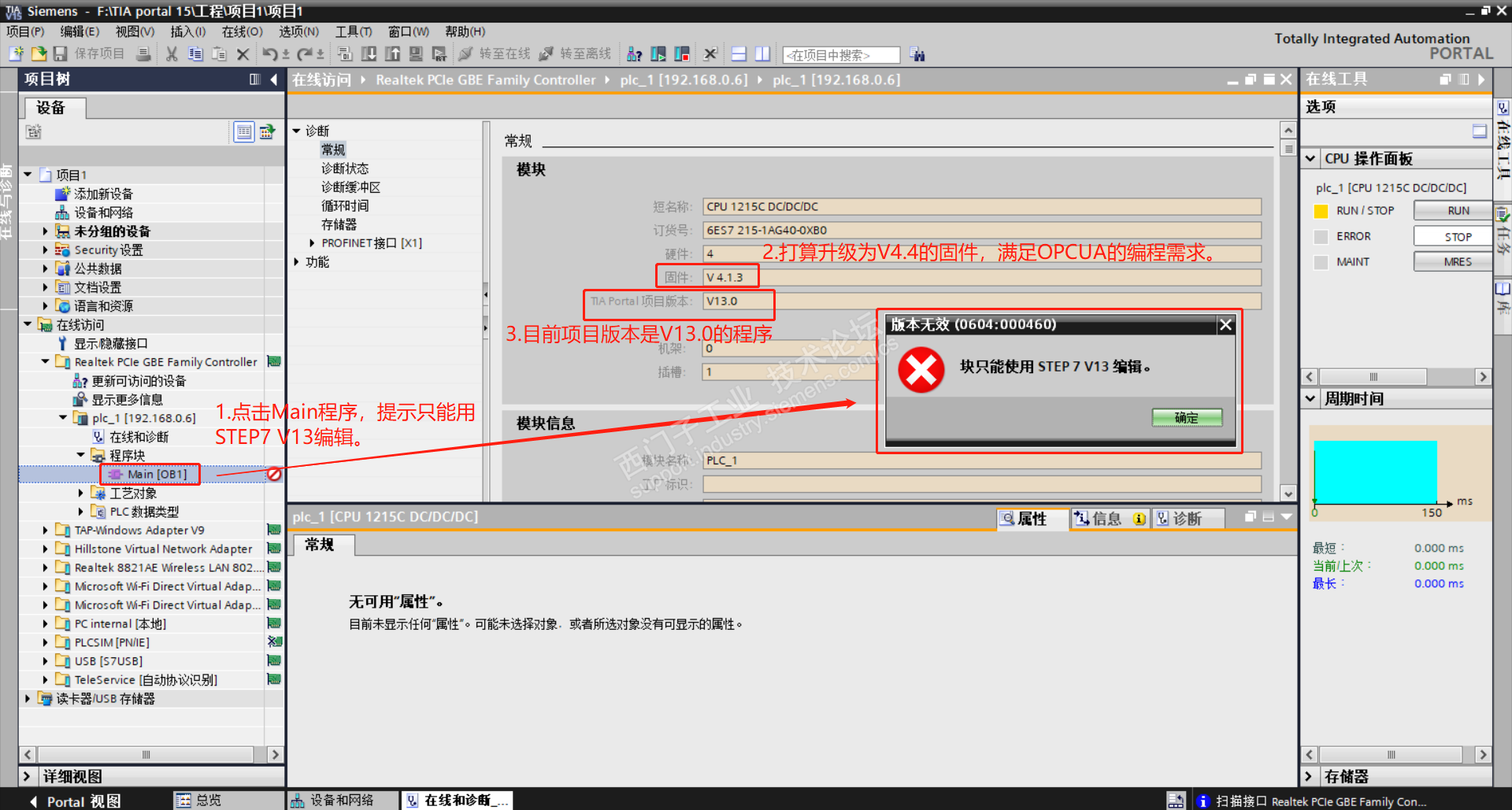 1、当前使用的S7-1200 PLC的程序是V13.0编译的,但我使用的编程软件是Portal V15,如何解决?在V15就能编程?