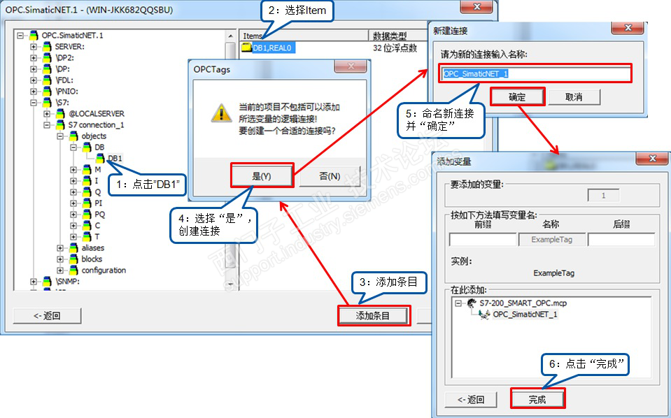 4、建立新连接并添加所需变量。在变量列表中选择所需要的变量,点“添加条目”按钮添加所需变量,此时会自动要求你建立一个新连接,并将变量添加到这个连接中,如下图所示。如果需要添加多个变量,按上述步骤重复添加即可。