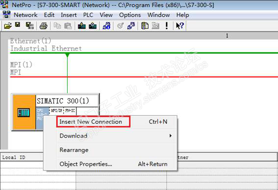 2.打开“NetPro”设置网络参数,选中CPU 315-2PN/DP,在连接列表中建立新的连接。