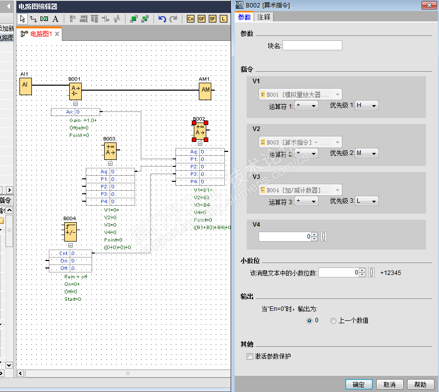 算数指令的V1(P1)【3-4】、计数器的ON、OFF,等等等,是“引用”数据的输入端,只能连接如图所示