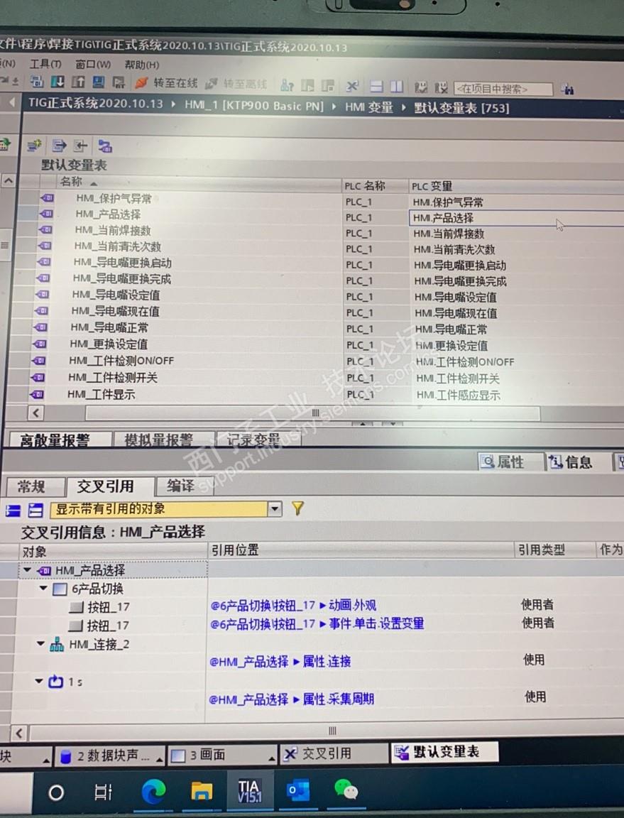 在HMI使用了DB 块里的变量,但是在程序段里交叉引用,不显示在HMI里使用