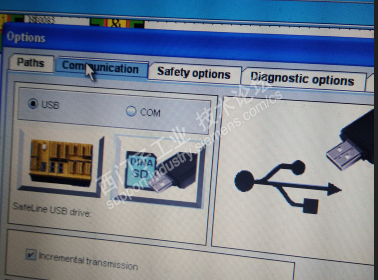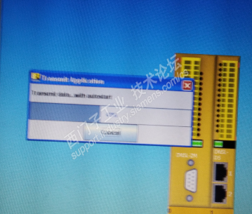 结果传送开始执行了,传的过程中一次是传了硬件组态,接着自动传程序到EPROM内,此时我明白了为什么昨晚维修人员换新的PLC上去,同时把原SD卡插到新的PLC上去后,SD卡内的程序并没有传到EPROM内,所以故障才没能解决。