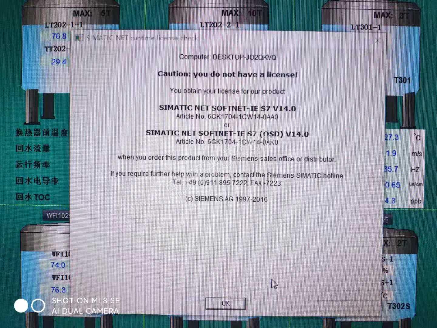 安装WINCC NET V14,查看安装授权没有红色,但是WINCC运行一段时间就弹出图片上的对话框,请大侠指导一下。