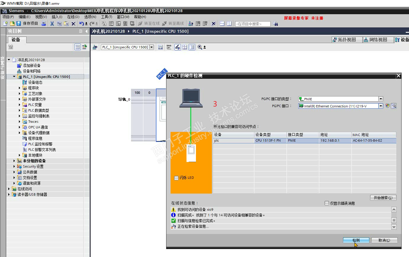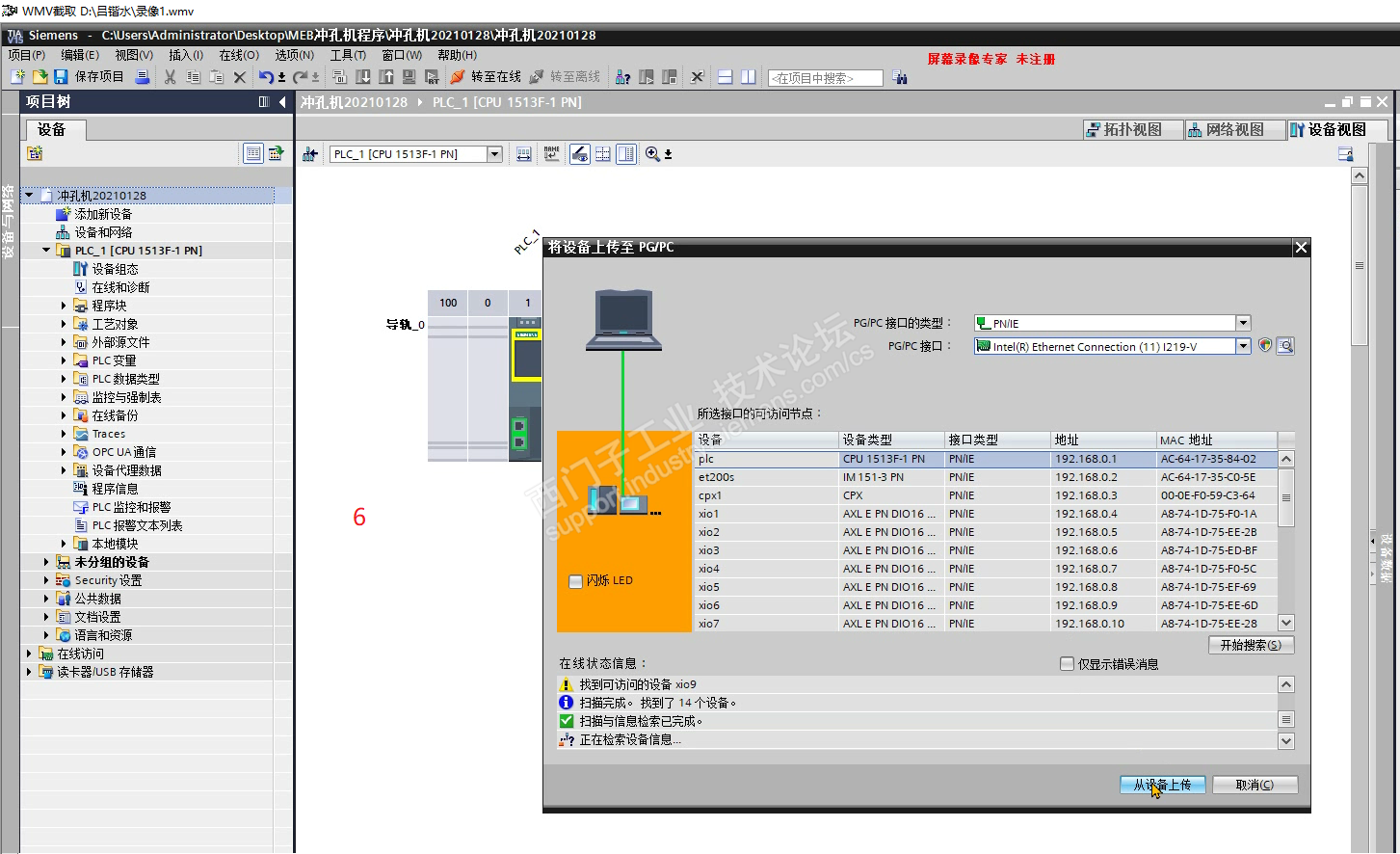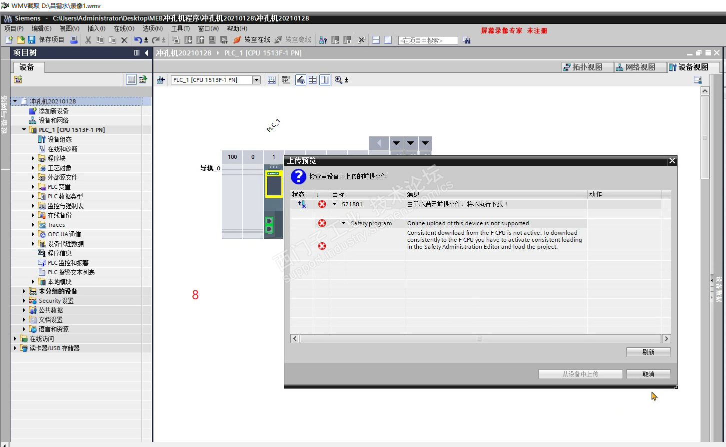 上传S7-1500CPU程序不成功,操作过程按照图片号码顺序看,请问是什么原因?怎么解决?谢谢!