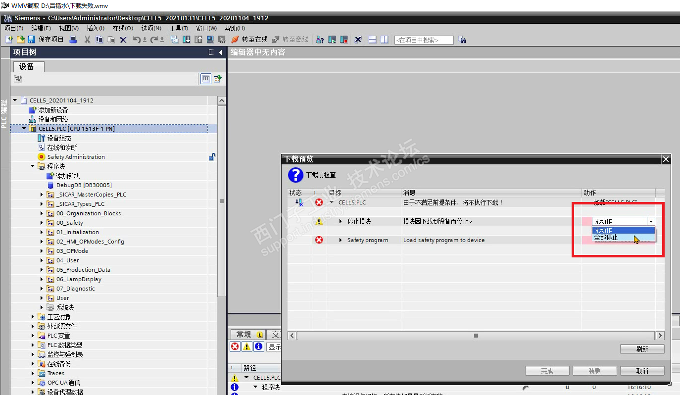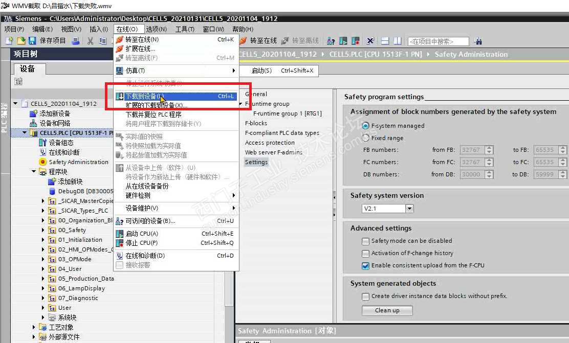 图片2:PC端博途V15软件的safety administration一致性上传载勾选上,准备下载到CPU。