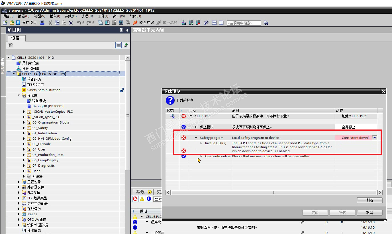 图片6:安全程序一致性下载,有无效UDT(s)提示,不能下载。