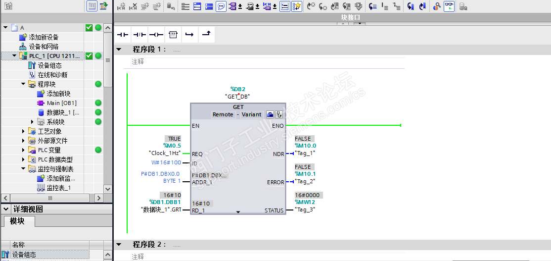 1211用S7通讯读写200smart,程序都下载进去了也没有报错,通讯的时候没什么反应,但ERROR也没有报错,完成位也是FALSE,是哪里有问题呢