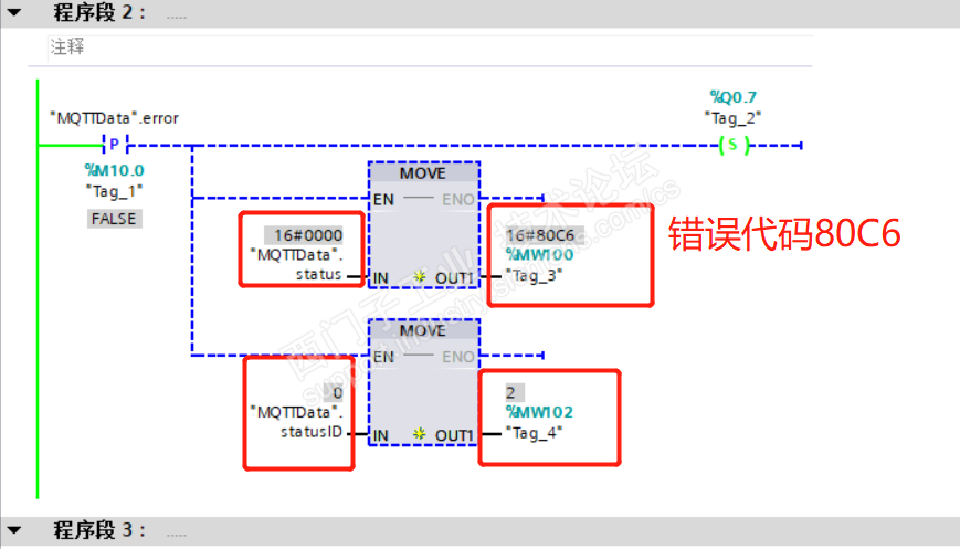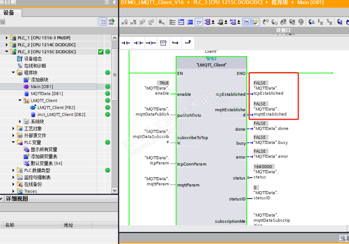 PLCS7-1200,博图版本V16,CPU是1215DC/DCDC,EMQX云服务器已经搭建成功,用MQTTBOX测试是可以通的,但是PLC中一直没有通讯成功,不知道是参数设置问题还是哪个地方设置的不正确,一直报错80C6,请指教!