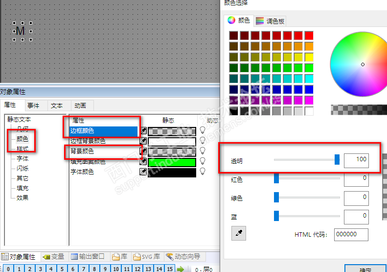2,然后设置静态文本的背景颜色和边框颜色为透明