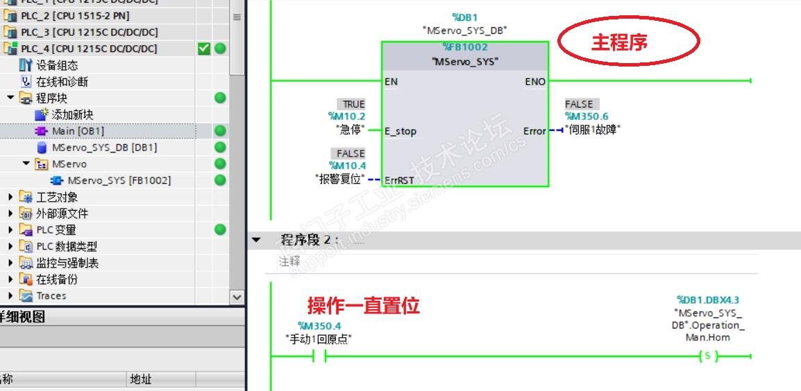 a.这个程序的大意是,当(主程序)网络2,启动置位(Operation_Man.Hom);