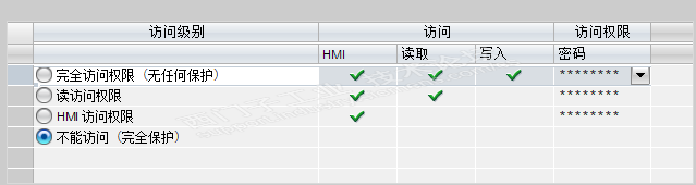还有一个问题就是关于设置密码的,上面(图1)的这个访问密码是根据哪里的设置去填写的?我在PLC的硬件组态里面设置密码后好像没啥用呀(图2)。还有一个就是HMI--运行系统设置里面的“传输密码”,我在这三个密码之间来回试了仿真好久,还是没搞明白这里的关系。。求老师提点下。