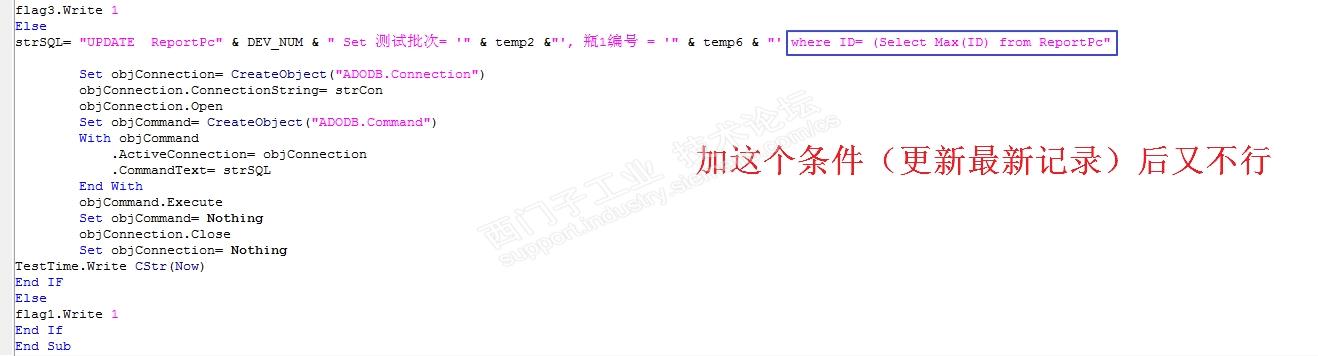 你好版主,现在我没有加Where条件(就是更新指定字段的所有数据)是可以的见图1,但加了条件后又不行见图2(条件是最新的一条数据记录更新)。