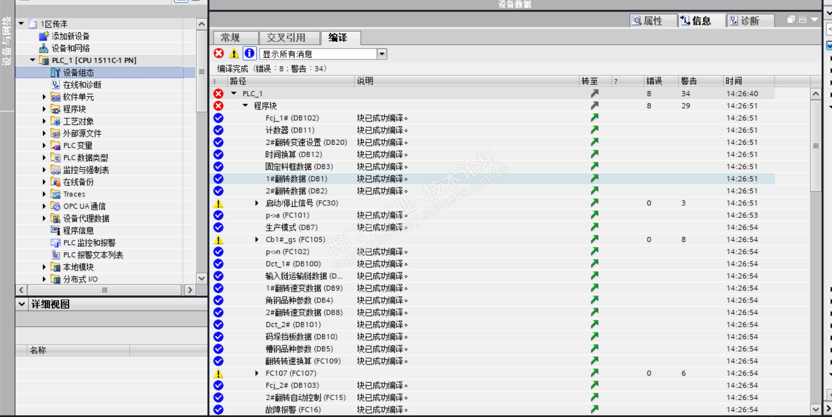 随机选择了一个1500的CPU,然后组态了一个ET200SP的站,但编译之后出现的具体错误怎么找到呢?