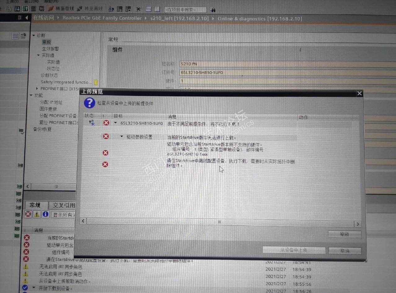 请问当前Startdrive不是支持S210吗?是仅支持下载,不支持上载吗?
