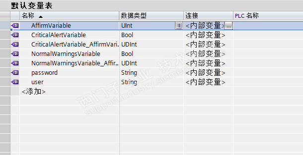 在变量表中添加变量“password”、“user”,格式为“string”。用来存储用户名和登录密码。