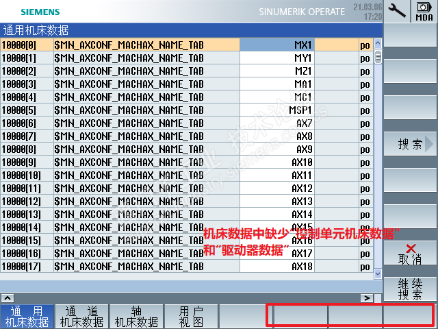 请未大家,为何840D系统的机床参数中缺少“控制单元机床数据”和“驱动器数据”,这两个模块。