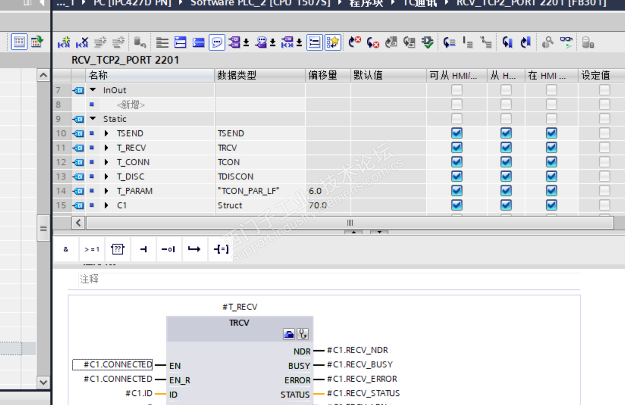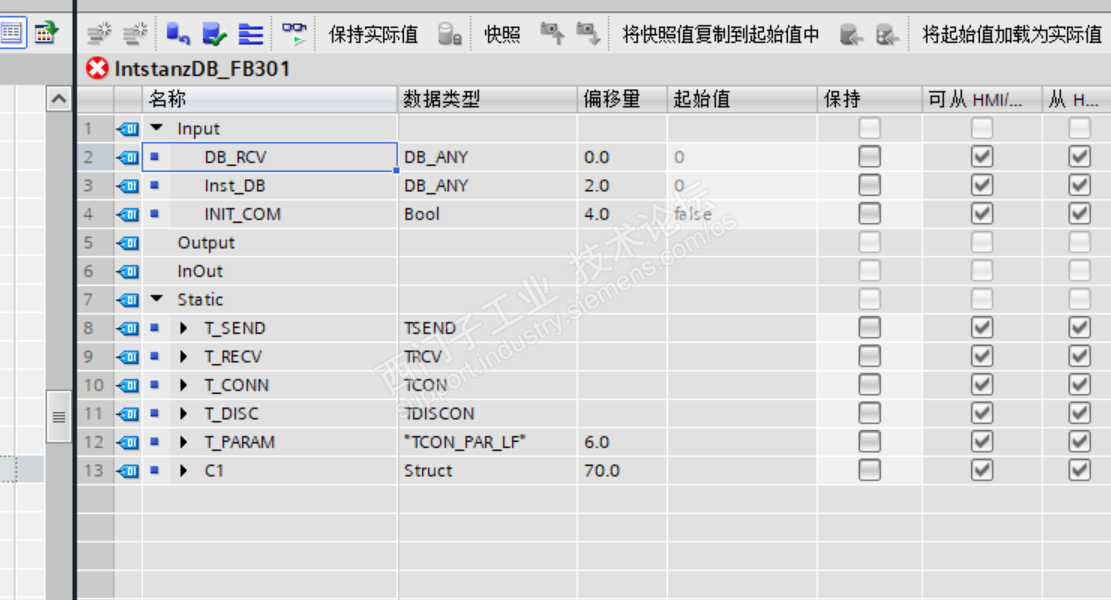 在FB块的静态变量表里调用了FB83,为什么编译后没有偏移量,见下图