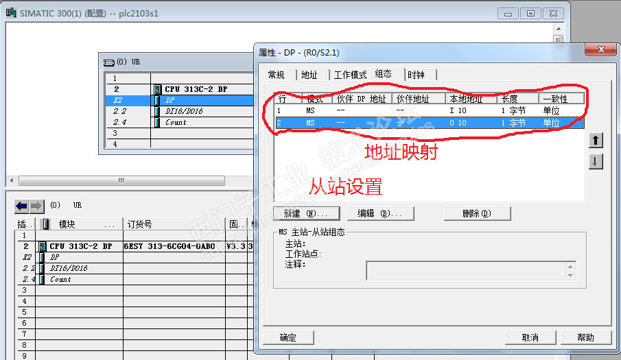 按要求我先组态从站,再组态主站点。设置站号,数据对应等如下