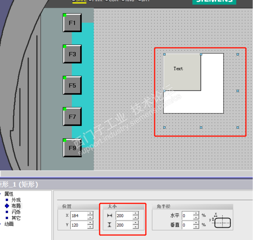 我在拉矩形和圆形的时候发现在属性-布局下面的大小与矩形的实际大小不符,请看下面的图片,