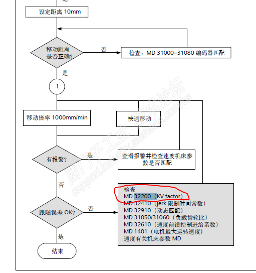 维修人员说:840D数控系统出现X轴在倍率超过50%时轮廓误差25040报警 ,说伺服电机有问题。